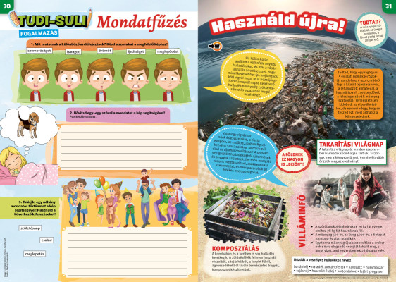 A Tudorka magazin kifejezetten harmadikosok számára összeállított oldalai változatosan, érdekesen és olvasmányosan feldolgozott, a tananyag kiegészítését szolgáló témákat tartalmaz. Ezek az oldalak kiválóan alkalmazhatók a tanórai differenciáláshoz, a hangos olvasás, szövegértés fejlesztéséhez, szókincsbővítéshez. Hozzájárulnak a környezettudatos magatartás kialakításához, és gazdagítják a gyermek érzelem- és gondolatvilágát.