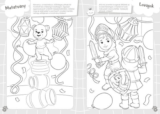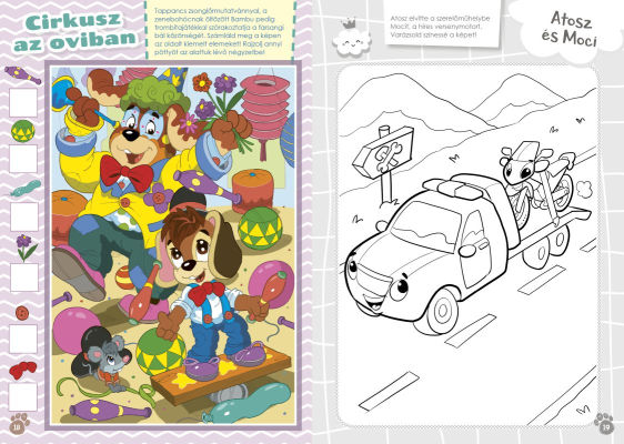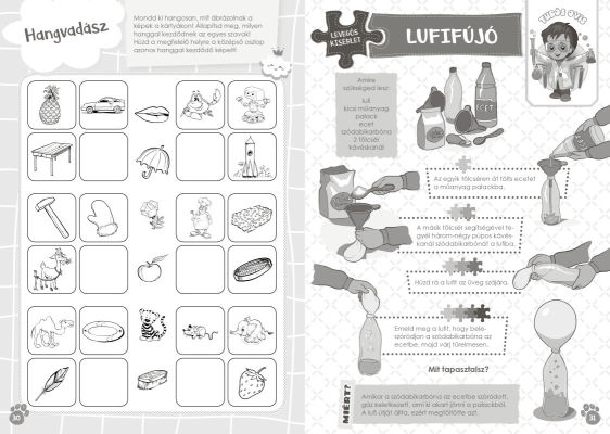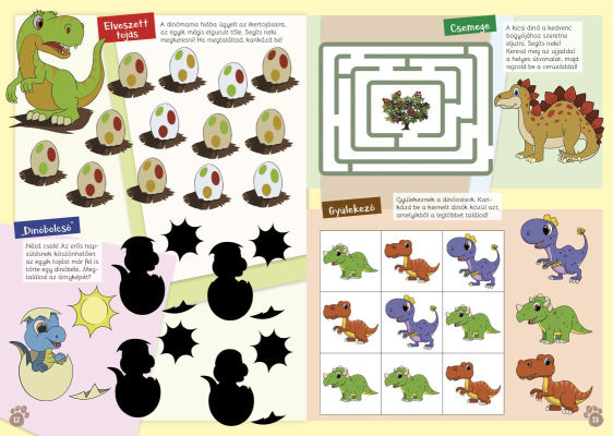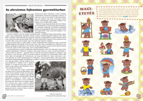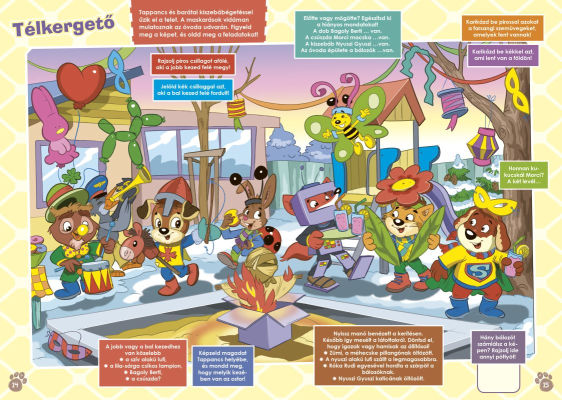 A színes oldalak minden hónapban tartalmaznak téri tájékozódást, alapvető matematikai készségeket, szín- és formaismeretet, logikus gondolkodást, koncentrációt és finommotorikát fejlesztő feladatokat, szórakoztató rejtvényeket és fejtörőket, rajzpályázatot, valamint hasznos nevelési tanácsokat a gyermekpszichológustól.