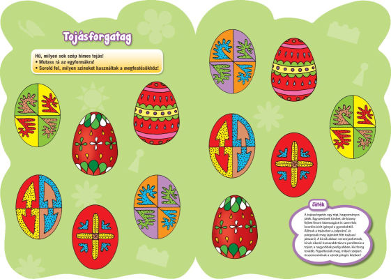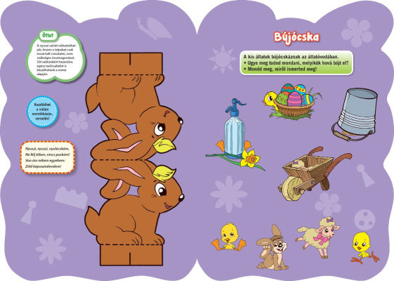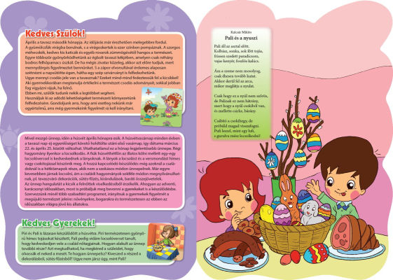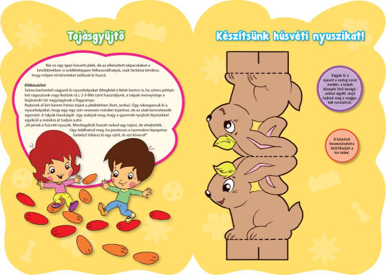 Könnyen elkészíthető barkácsötletek, egyszerű színezők, mozgásos mondókázó, játék, párkereső feladatok tarkítják a mesefolyamot. A szülők számos gyakorlati tanácsot találnak, illetve a magazin utolsó oldalain szakembereknek az adott alaptémához kapcsolódó, összegyűjtött gyakorlati tanácsait, ötleteit, véleményét olvashatják.