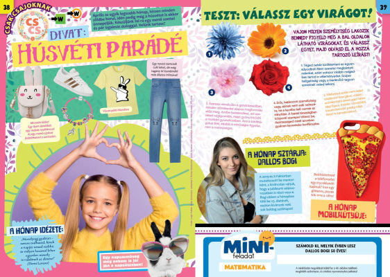 Immár 20 éve készítünk izgalmas, szórakoztató magazinokat az 5-12 éves korosztály számára. Termékeink elsősorban a gyermekek szórakoztatását és fejlesztését segítik és egyaránt jól használhatóak mind családi körben, mind az oktatási intézményekben.