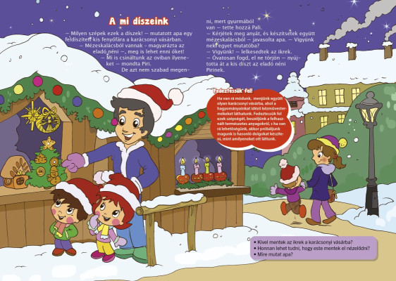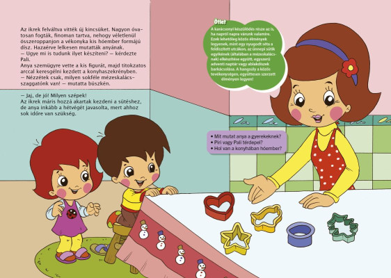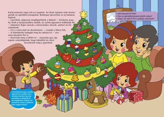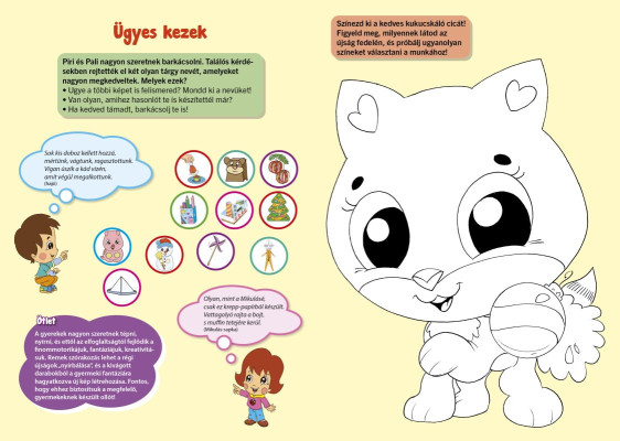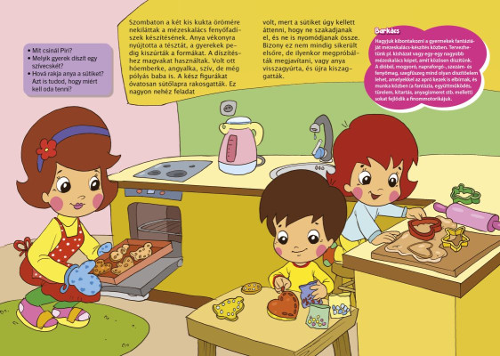 Könnyen elkészíthető barkácsötletek, egyszerű színezők, mozgásos mondókázó, játék, párkereső feladatok tarkítják a mesefolyamot. A szülők számos gyakorlati tanácsot találnak, illetve a magazin utolsó oldalain szakembereknek az adott alaptémához kapcsolódó, összegyűjtött gyakorlati tanácsait, ötleteit, véleményét olvashatják.
