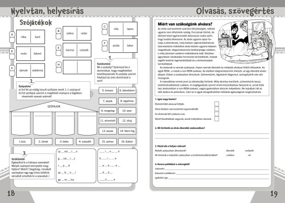 A szaktárgyi oldalak (matematika, környezetismeret, olvasás-szövegértés, nyelvtan, fogalmazás) témaválasztásban és időzítésben is szorosan illeszkednek a NAT-hoz. Az egyes tananyagok megértését, gyakorlását kivágható barkácsolnivalók segítik. A játékos feladatok és a szórakoztató rejtvényoldalak különböző fejlesztési területekhez kapcsolódnak (pl. figyelem, érzékelés, észlelés, gondolkodás, emlékezet).
