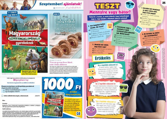 Immár 20 éve készítünk izgalmas, szórakoztató magazinokat az 5-12 éves korosztály számára. Termékeink elsősorban a gyermekek szórakoztatását és fejlesztését segítik és egyaránt jól használhatóak mind családi körben, mind az oktatási intézményekben.