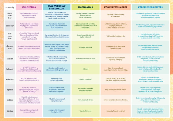 A szaktárgyi oldalak (matematika, környezetismeret, olvasás-szövegértés, nyelvtan, fogalmazás) témaválasztásban és időzítésben is szorosan illeszkednek a NAT-hoz. Az egyes tananyagok megértését, gyakorlását kivágható barkácsolnivalók segítik. A játékos feladatok és a szórakoztató rejtvényoldalak különböző fejlesztési területekhez kapcsolódnak (pl. figyelem, érzékelés, észlelés, gondolkodás, emlékezet).
