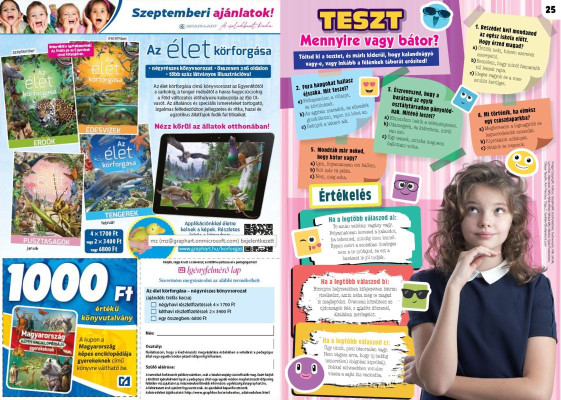 Immár 20 éve készítünk izgalmas, szórakoztató magazinokat az 5-12 éves korosztály számára. Termékeink elsősorban a gyermekek szórakoztatását és fejlesztését segítik és egyaránt jól használhatóak mind családi körben, mind az oktatási intézményekben.