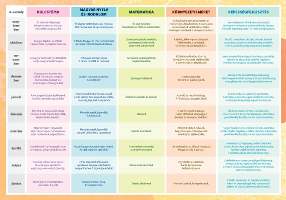 A szaktárgyi oldalak (matematika, környezetismeret, olvasás-szövegértés, nyelvtan, fogalmazás) témaválasztásban és időzítésben is szorosan illeszkednek a NAT-hoz. Az egyes tananyagok megértését, gyakorlását kivágható barkácsolnivalók segítik. A játékos feladatok és a szórakoztató rejtvényoldalak különböző fejlesztési területekhez kapcsolódnak (pl. figyelem, érzékelés, észlelés, gondolkodás, emlékezet).