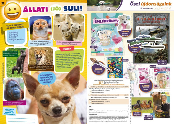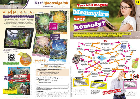 Immár 20 éve készítünk izgalmas, szórakoztató magazinokat az 5-12 éves korosztály számára. Termékeink elsősorban a gyermekek szórakoztatását és fejlesztését segítik és egyaránt jól használhatóak mind családi körben, mind az oktatási intézményekben.