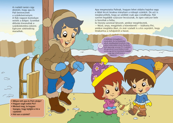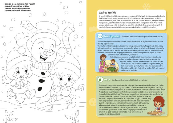 Könnyen elkészíthető barkácsötletek, egyszerű színezők, mozgásos mondókázó, játék, párkereső feladatok tarkítják a mesefolyamot. A szülők számos gyakorlati tanácsot találnak, illetve a magazin utolsó oldalain szakembereknek az adott alaptémához kapcsolódó, összegyűjtött gyakorlati tanácsait, ötleteit, véleményét olvashatják.