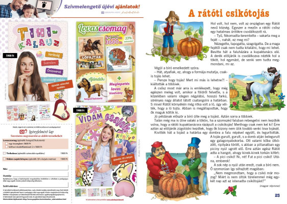 Immár 20 éve készítünk izgalmas, szórakoztató magazinokat az 5-12 éves korosztály számára. Termékeink elsősorban a gyermekek szórakoztatását és fejlesztését segítik és egyaránt jól használhatóak mind családi körben, mind az oktatási intézményekben.
