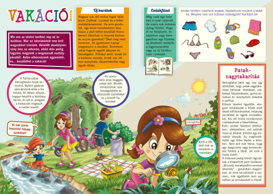 A második osztályosok számára szerkesztett ismeretterjesztő magazin szaktárgyi oldalai (matematika, környezetismeret, nyelvtan, olvasás-szövegértés) témaválasztásban és időzítésben is szorosan illeszkednek a NAT-hoz. Az egyes tananyagok megértését, gyakorlását kivágható barkácsolnivalók segítik. Egész évben tematikus sorozatok, mesék tartják fent a gyerekek érdeklődését a magazin iránt.