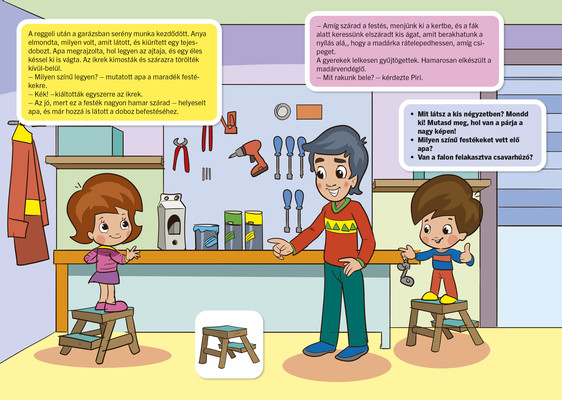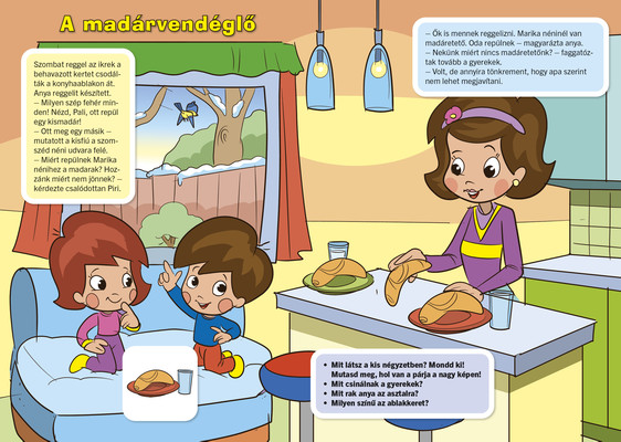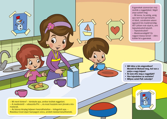 Könnyen elkészíthető barkácsötletek, egyszerű színezők, mozgásos mondókázó, játék, párkereső feladatok tarkítják a mesefolyamot. A szülők számos gyakorlati tanácsot találnak, illetve a magazin utolsó oldalain szakembereknek az adott alaptémához kapcsolódó, összegyűjtött gyakorlati tanácsait, ötleteit, véleményét olvashatják.