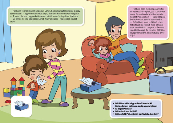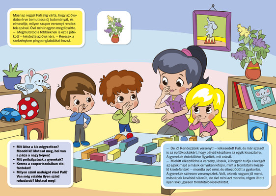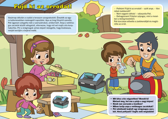 Könnyen elkészíthető barkácsötletek, egyszerű színezők, mozgásos mondókázó, játék, párkereső feladatok tarkítják a mesefolyamot. A szülők számos gyakorlati tanácsot találnak, illetve a magazin utolsó oldalain szakembereknek az adott alaptémához kapcsolódó, összegyűjtött gyakorlati tanácsait, ötleteit, véleményét olvashatják.