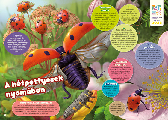 A második osztályosok számára szerkesztett ismeretterjesztő magazin szaktárgyi oldalai (matematika, környezetismeret, nyelvtan, olvasás-szövegértés) témaválasztásban és időzítésben is szorosan illeszkednek a NAT-hoz. Az egyes tananyagok megértését, gyakorlását kivágható barkácsolnivalók segítik. Egész évben tematikus sorozatok, mesék tartják fent a gyerekek érdeklődését a magazin iránt.
