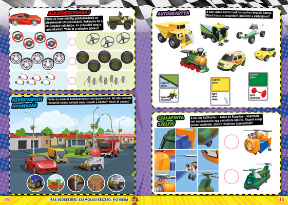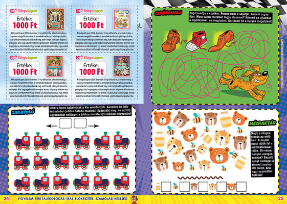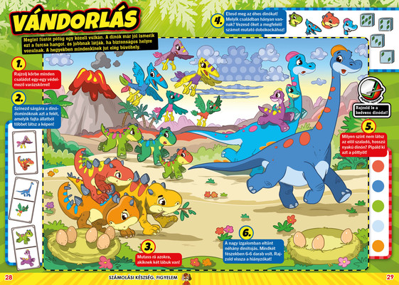 A színes oldalak minden hónapban tartalmaznak téri tájékozódást, alapvető matematikai készségeket, szín- és formaismeretet, logikus gondolkodást, koncentrációt és finommotorikát fejlesztő feladatokat, szórakoztató rejtvényeket és fejtörőket, rajzpályázatot, valamint hasznos nevelési tanácsokat a gyermekpszichológustól.