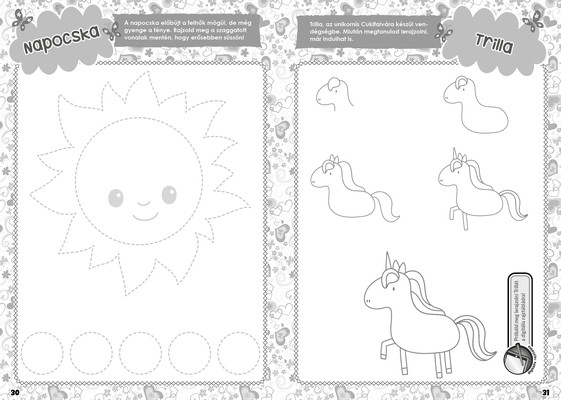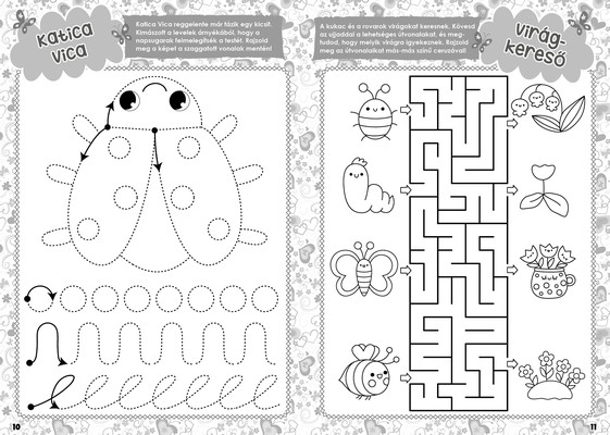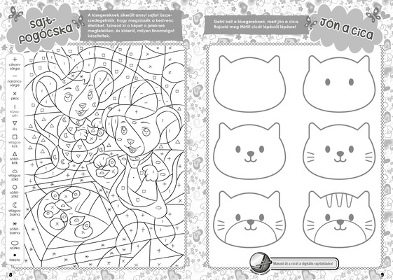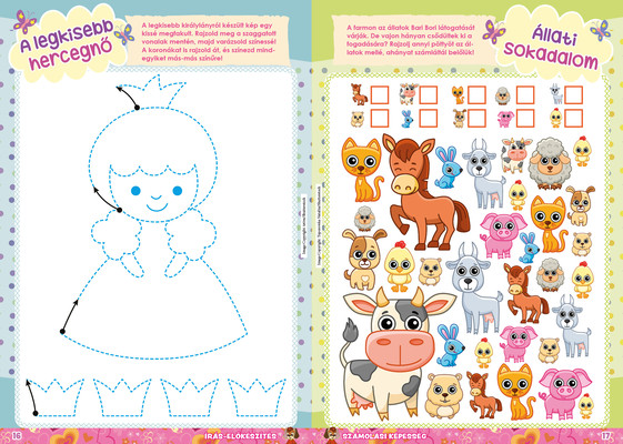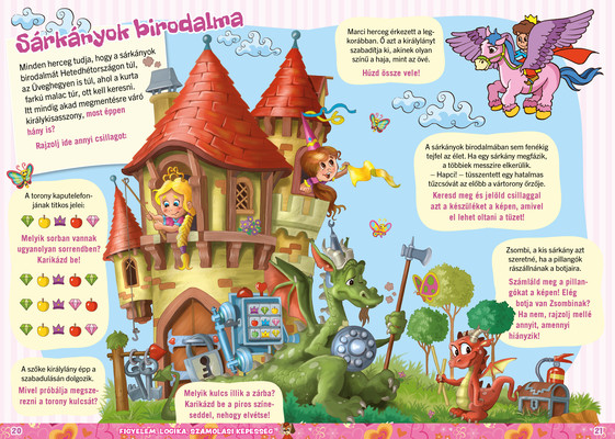 A színes oldalak minden hónapban tartalmaznak téri tájékozódást, alapvető matematikai készségeket, szín- és formaismeretet, logikus gondolkodást, koncentrációt és finommotorikát fejlesztő feladatokat, szórakoztató rejtvényeket és fejtörőket, rajzpályázatot, valamint hasznos nevelési tanácsokat a gyermekpszichológustól.