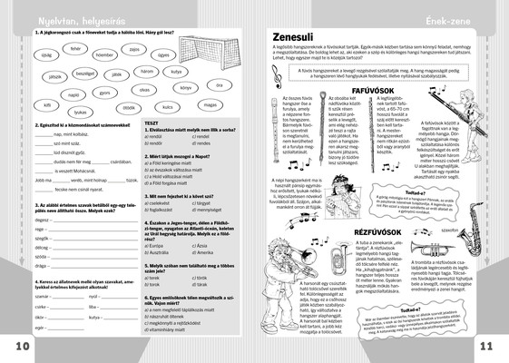 A szaktárgyi oldalak (matematika, környezetismeret, olvasás-szövegértés, nyelvtan, fogalmazás) témaválasztásban és időzítésben is szorosan illeszkednek a NAT-hoz. Az egyes tananyagok megértését, gyakorlását kivágható barkácsolnivalók segítik. A játékos feladatok és a szórakoztató rejtvényoldalak különböző fejlesztési területekhez kapcsolódnak (pl. figyelem, érzékelés, észlelés, gondolkodás, emlékezet).