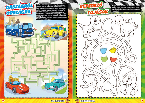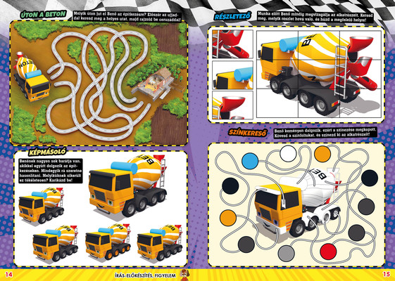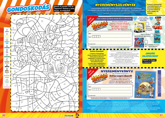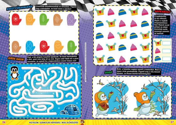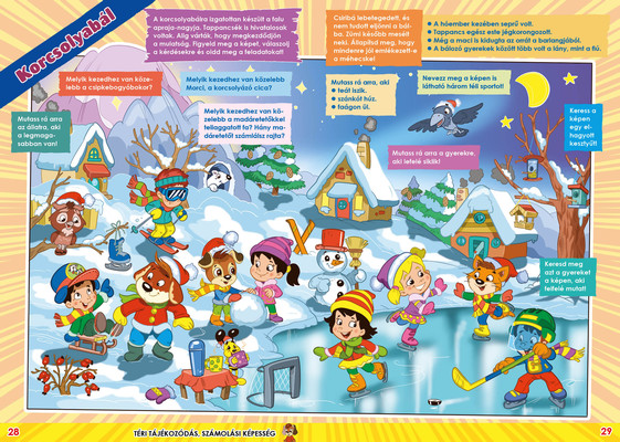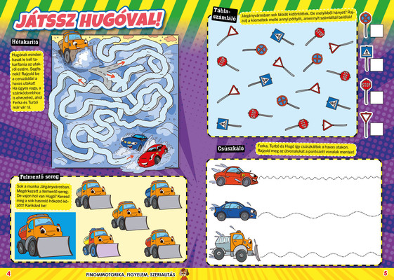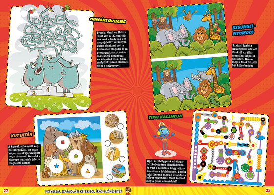 A színes oldalak minden hónapban tartalmaznak téri tájékozódást, alapvető matematikai készségeket, szín- és formaismeretet, logikus gondolkodást, koncentrációt és finommotorikát fejlesztő feladatokat, szórakoztató rejtvényeket és fejtörőket, rajzpályázatot, valamint hasznos nevelési tanácsokat a gyermekpszichológustól.