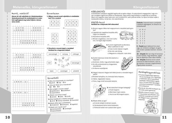 A szaktárgyi oldalak (matematika, környezetismeret, olvasás-szövegértés, nyelvtan, fogalmazás) témaválasztásban és időzítésben is szorosan illeszkednek a NAT-hoz. Az egyes tananyagok megértését, gyakorlását kivágható barkácsolnivalók segítik. A játékos feladatok és a szórakoztató rejtvényoldalak különböző fejlesztési területekhez kapcsolódnak (pl. figyelem, érzékelés, észlelés, gondolkodás, emlékezet).