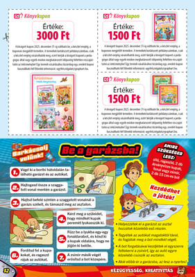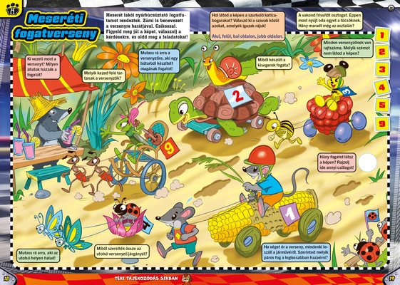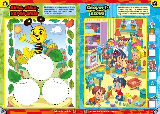 A színes oldalak minden hónapban tartalmaznak téri tájékozódást, alapvető matematikai készségeket, szín- és formaismeretet, logikus gondolkodást, koncentrációt és finommotorikát fejlesztő feladatokat, szórakoztató rejtvényeket és fejtörőket, rajzpályázatot, valamint hasznos nevelési tanácsokat a gyermekpszichológustól.
