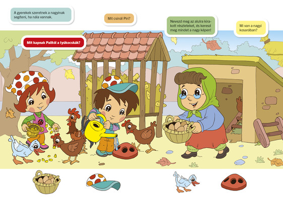Könnyen elkészíthető barkácsötletek, egyszerű színezők, mozgásos mondókázó, játék, párkereső feladatok tarkítják a mesefolyamot. A szülők számos gyakorlati tanácsot találnak, illetve a magazin utolsó oldalain szakembereknek az adott alaptémához kapcsolódó, összegyűjtött gyakorlati tanácsait, ötleteit, véleményét olvashatják.