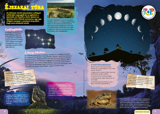 A második osztályosok számára szerkesztett ismeretterjesztő magazin szaktárgyi oldalai (matematika, környezetismeret, nyelvtan, olvasás-szövegértés) témaválasztásban és időzítésben is szorosan illeszkednek a NAT-hoz. Az egyes tananyagok megértését, gyakorlását kivágható barkácsolnivalók segítik. Egész évben tematikus sorozatok, mesék tartják fent a gyerekek érdeklődését a magazin iránt.