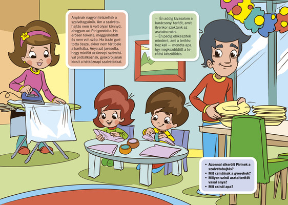 Könnyen elkészíthető barkácsötletek, egyszerű színezők, mozgásos mondókázó, játék, párkereső feladatok tarkítják a mesefolyamot. A szülők számos gyakorlati tanácsot találnak, illetve a magazin utolsó oldalain szakembereknek az adott alaptémához kapcsolódó, összegyűjtött gyakorlati tanácsait, ötleteit, véleményét olvashatják.
