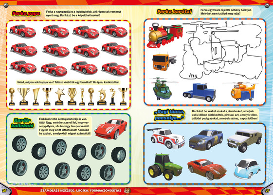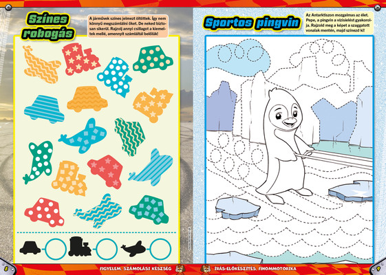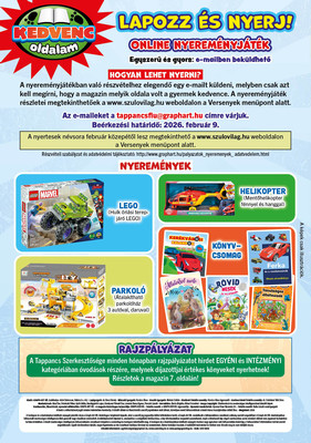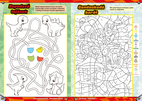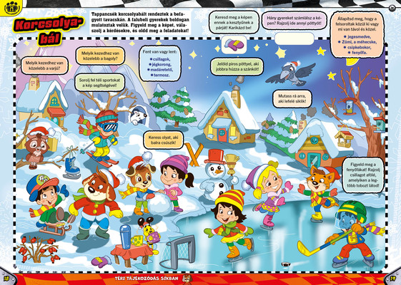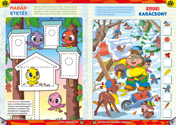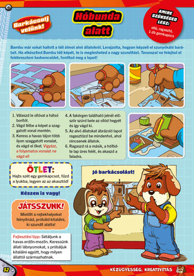 A színes oldalak minden hónapban tartalmaznak téri tájékozódást, alapvető matematikai készségeket, szín- és formaismeretet, logikus gondolkodást, koncentrációt és finommotorikát fejlesztő feladatokat, szórakoztató rejtvényeket és fejtörőket, rajzpályázatot, valamint hasznos nevelési tanácsokat a gyermekpszichológustól.