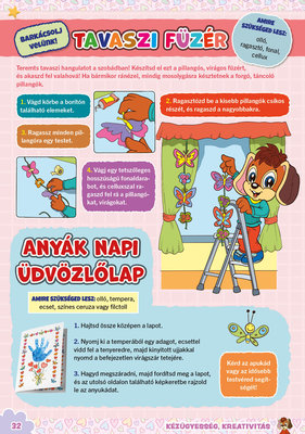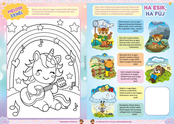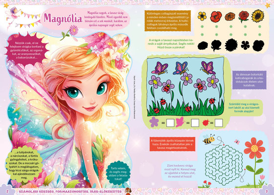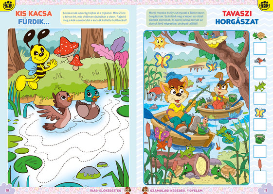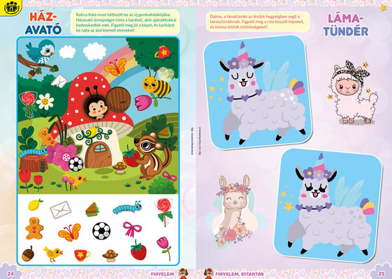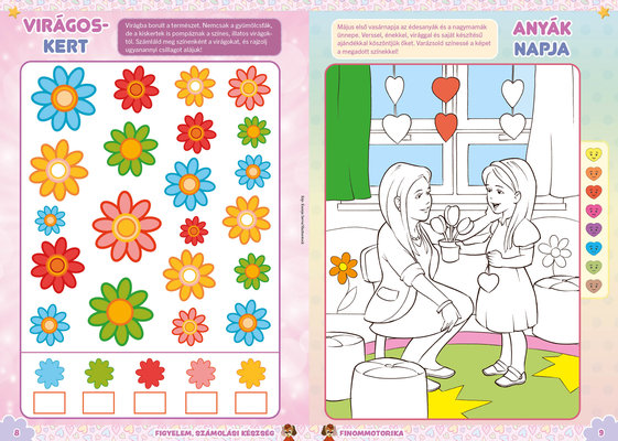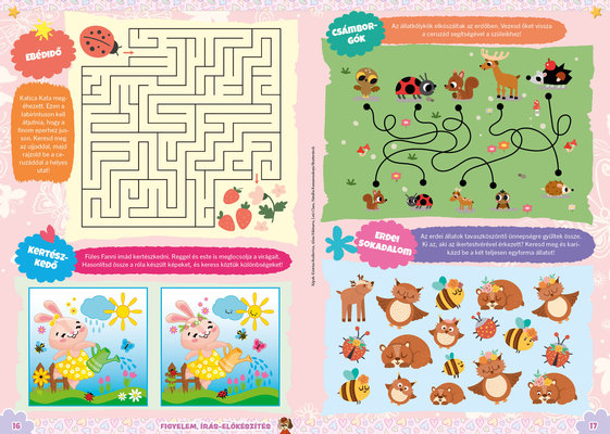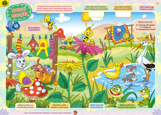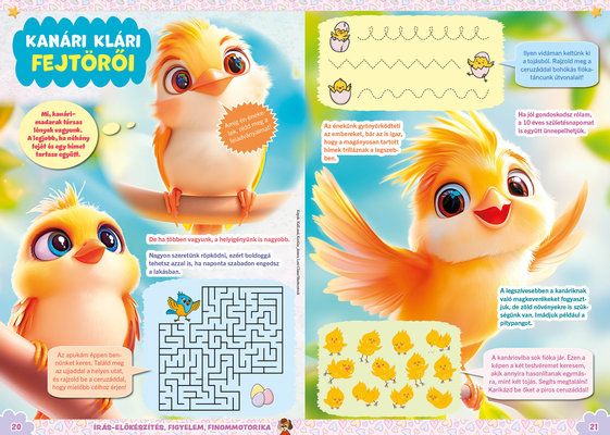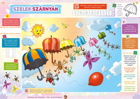 A színes oldalak minden hónapban tartalmaznak téri tájékozódást, alapvető matematikai készségeket, szín- és formaismeretet, logikus gondolkodást, koncentrációt és finommotorikát fejlesztő feladatokat, szórakoztató rejtvényeket és fejtörőket, rajzpályázatot, valamint hasznos nevelési tanácsokat a gyermekpszichológustól.