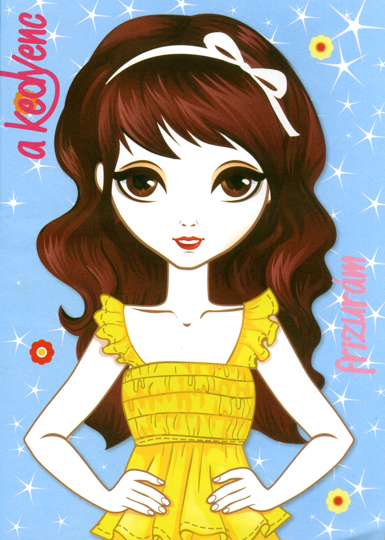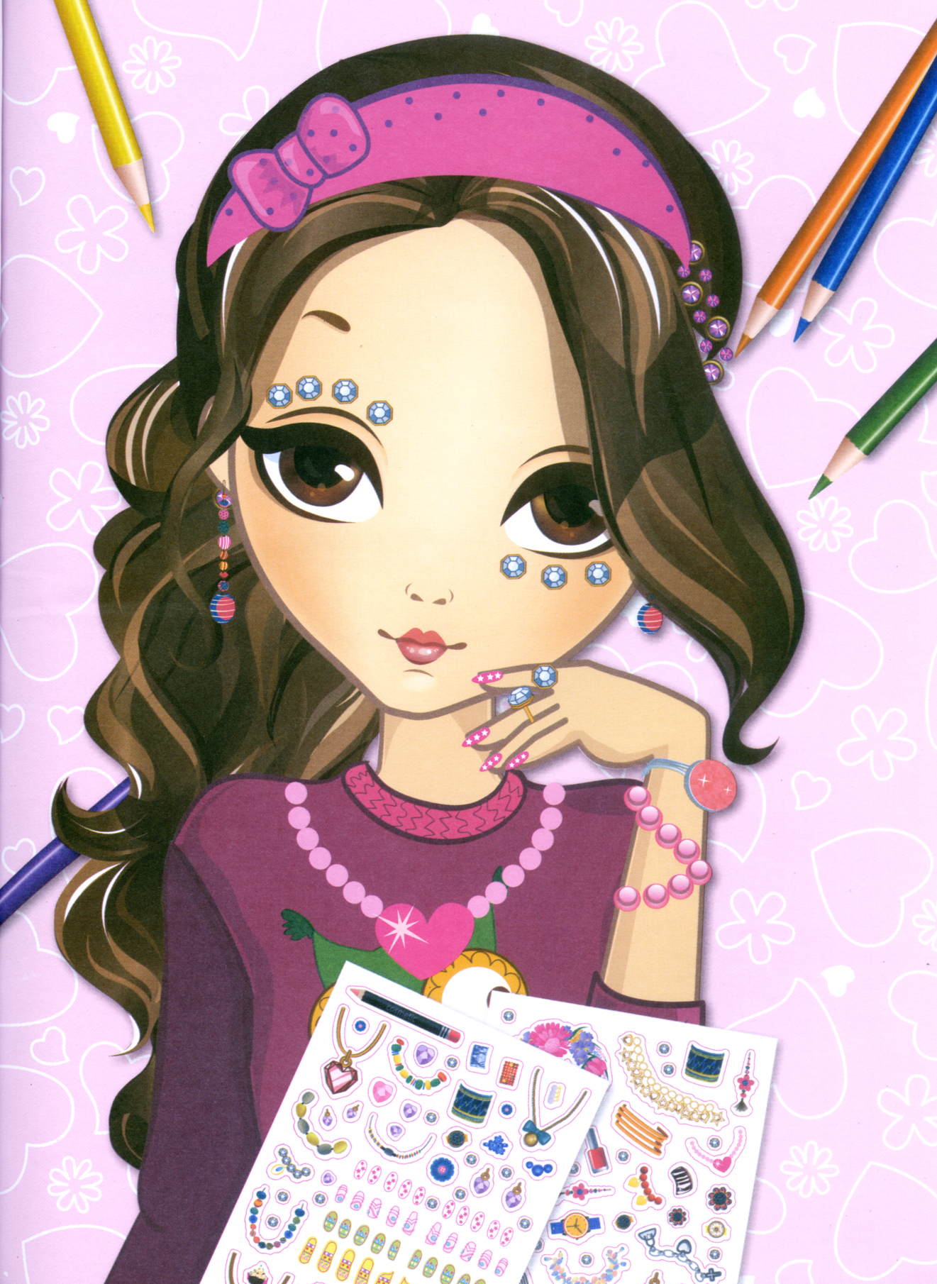 Öltözködés, smink, körmök, frizura… Kötetünkben a kislányok tetszés szerint dekorálhatnak.