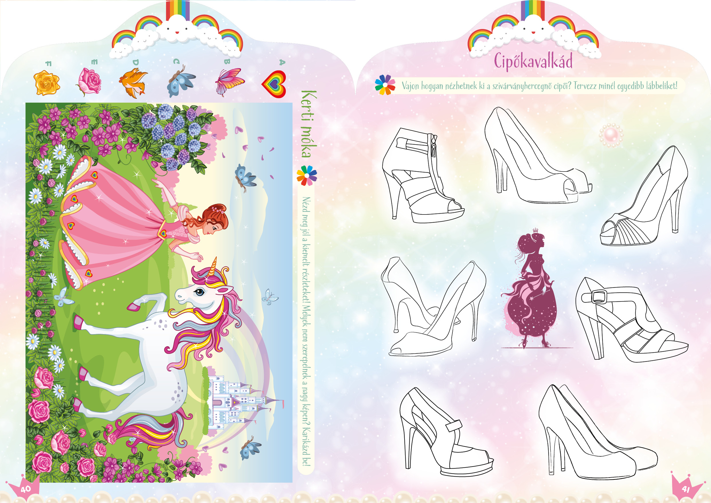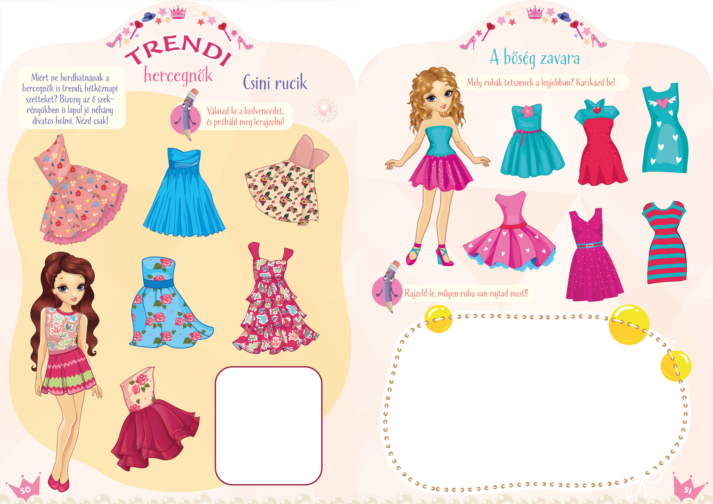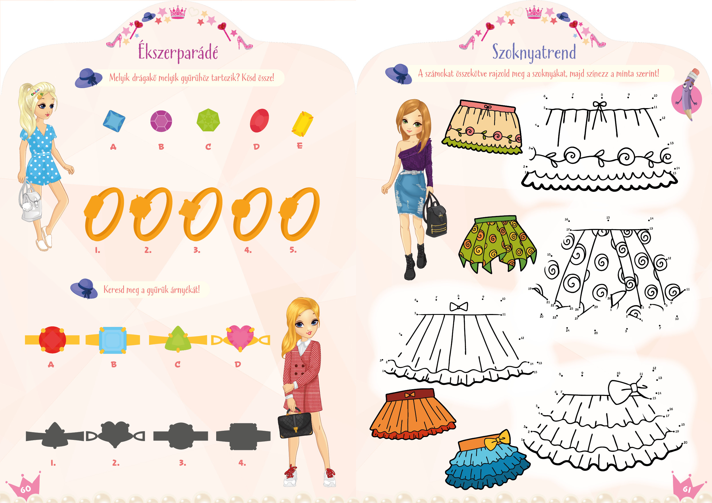 Kötetünkben sok-sok szórakoztató feladat, divattervező oldal és színező várja a kislányokat.