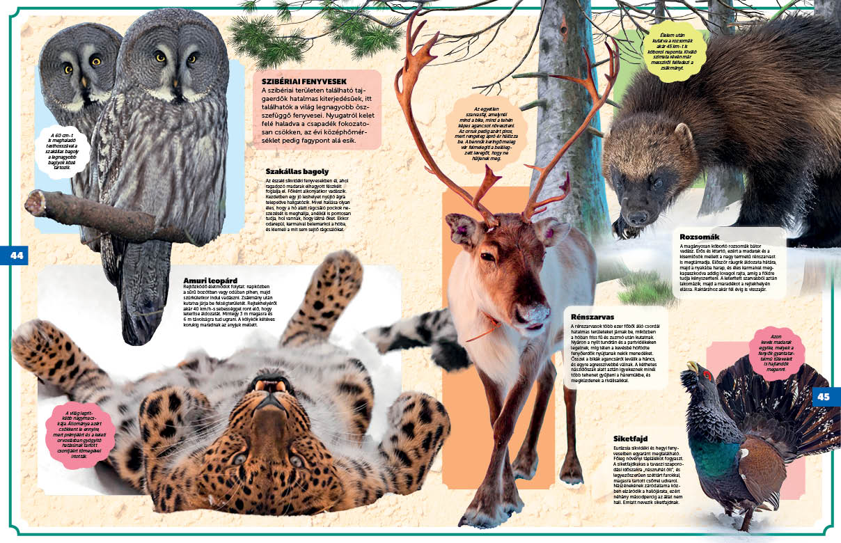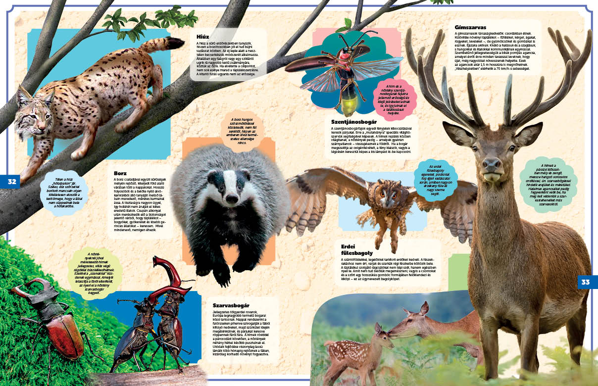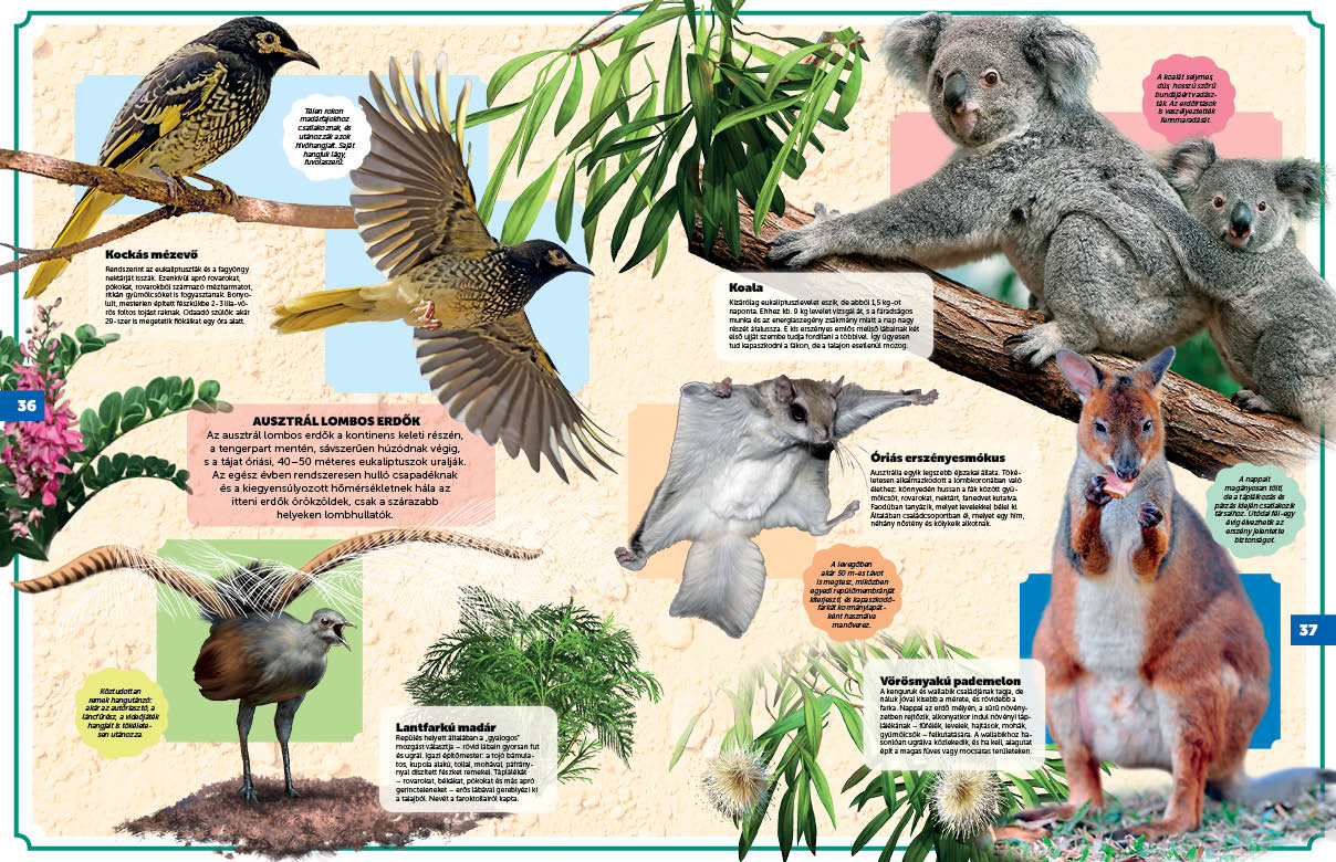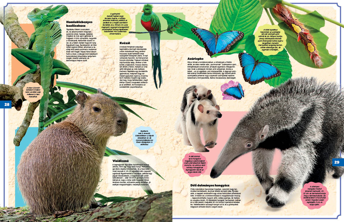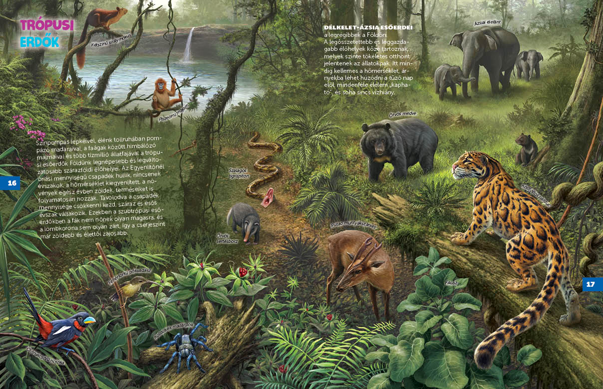 Vajon honnan kapta nevét a siketfajd? Melyik nagymacskának van a legnagyobb szemfoga? Milyen szuperképességgel bír a baziliszkusz? A sorozat első kötetével a Föld „zöld” tájait benépesítő állatok – jaguárok, mókusok, lepkék – és mások világába pillanthatunk be. Lenyűgöző utazást teszünk az Egyenlítő környéki trópusi erdőktől a tajgát uraló tűlevelű erdőségekig, s utunk fűtengereken – prérin, szavannán – át vezet.
