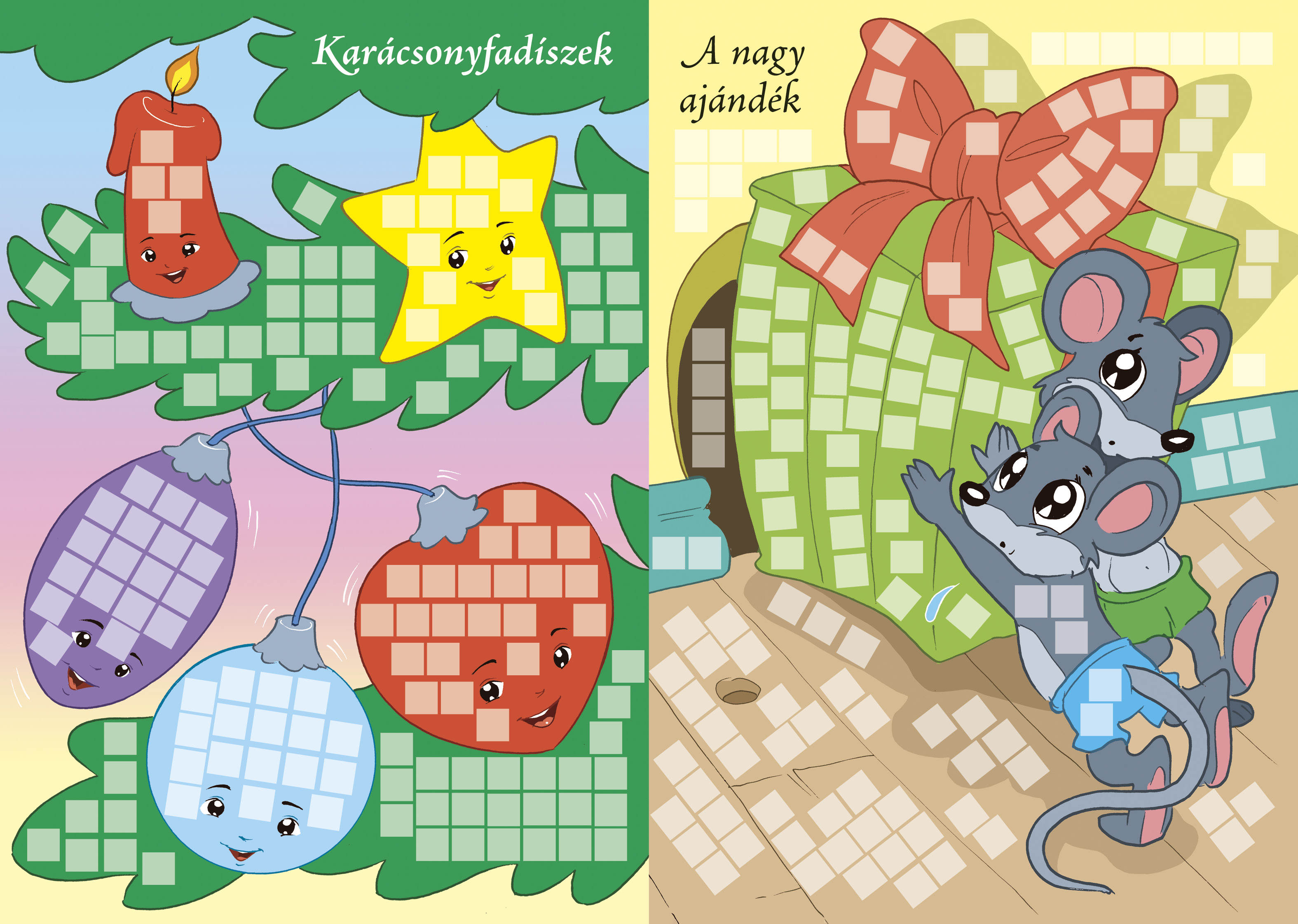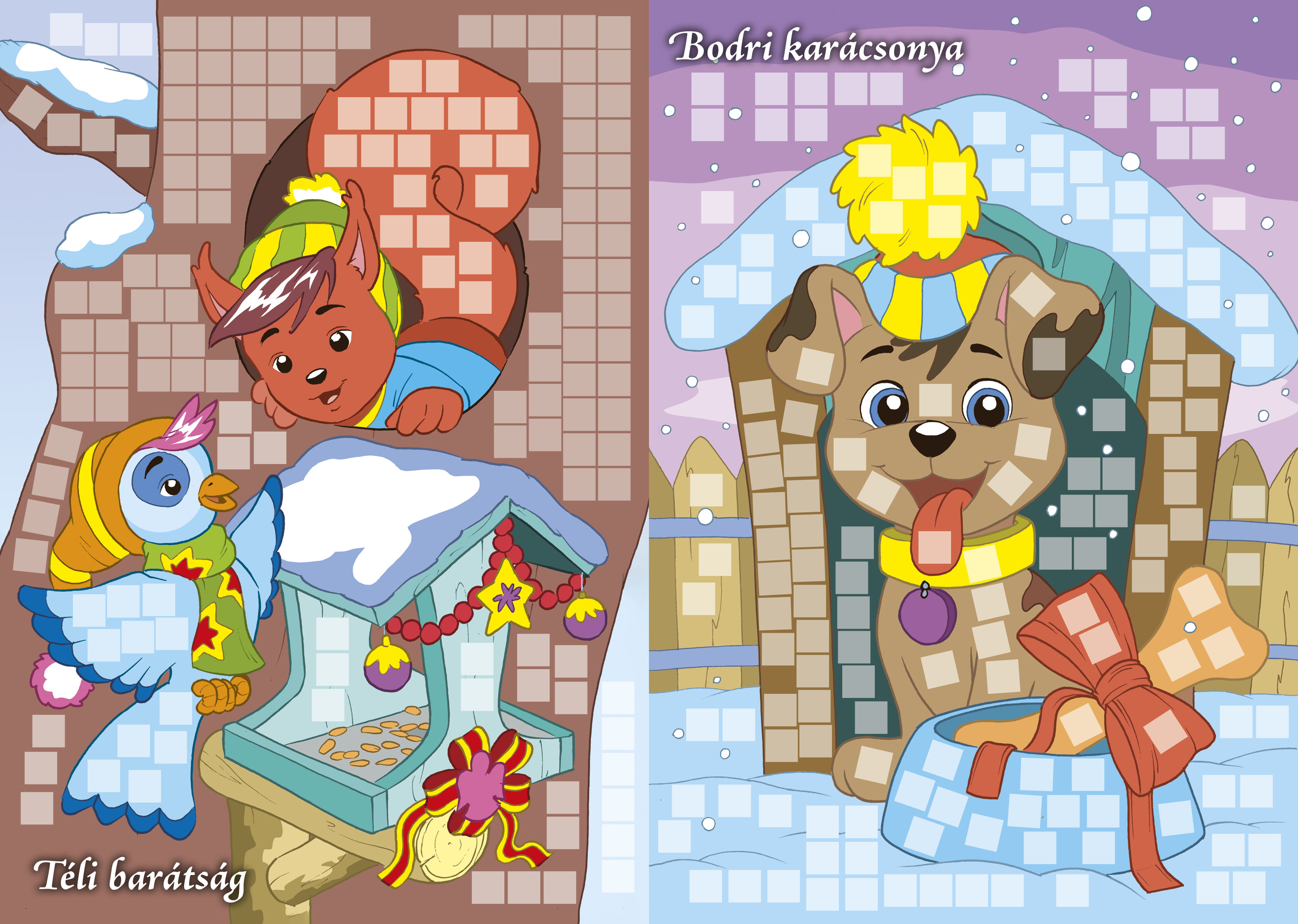 A karácsonyi matricamozaik egy újabb, a gyermekek számára nagyon kedves témájú kiadvány, amelyben a már ismert matricázó technikával tehetik teljessé a képeket.