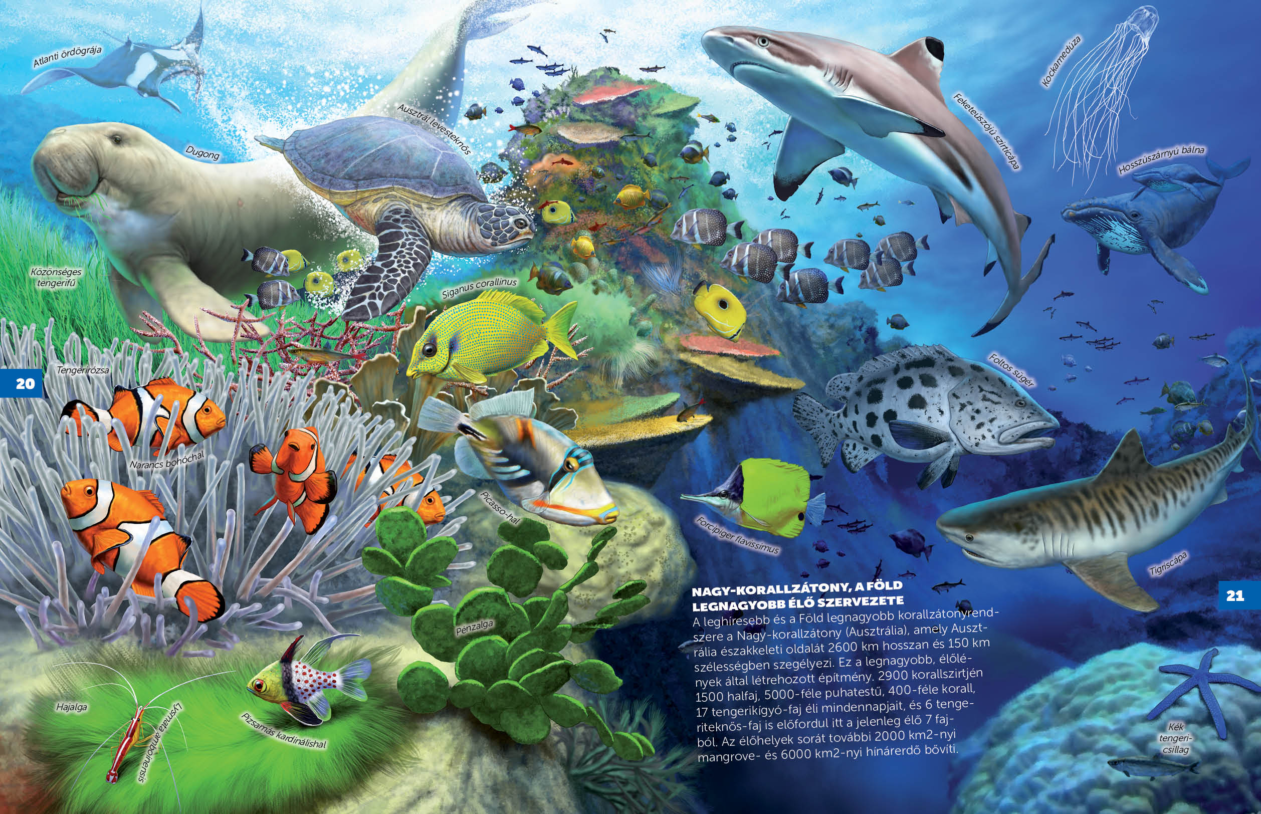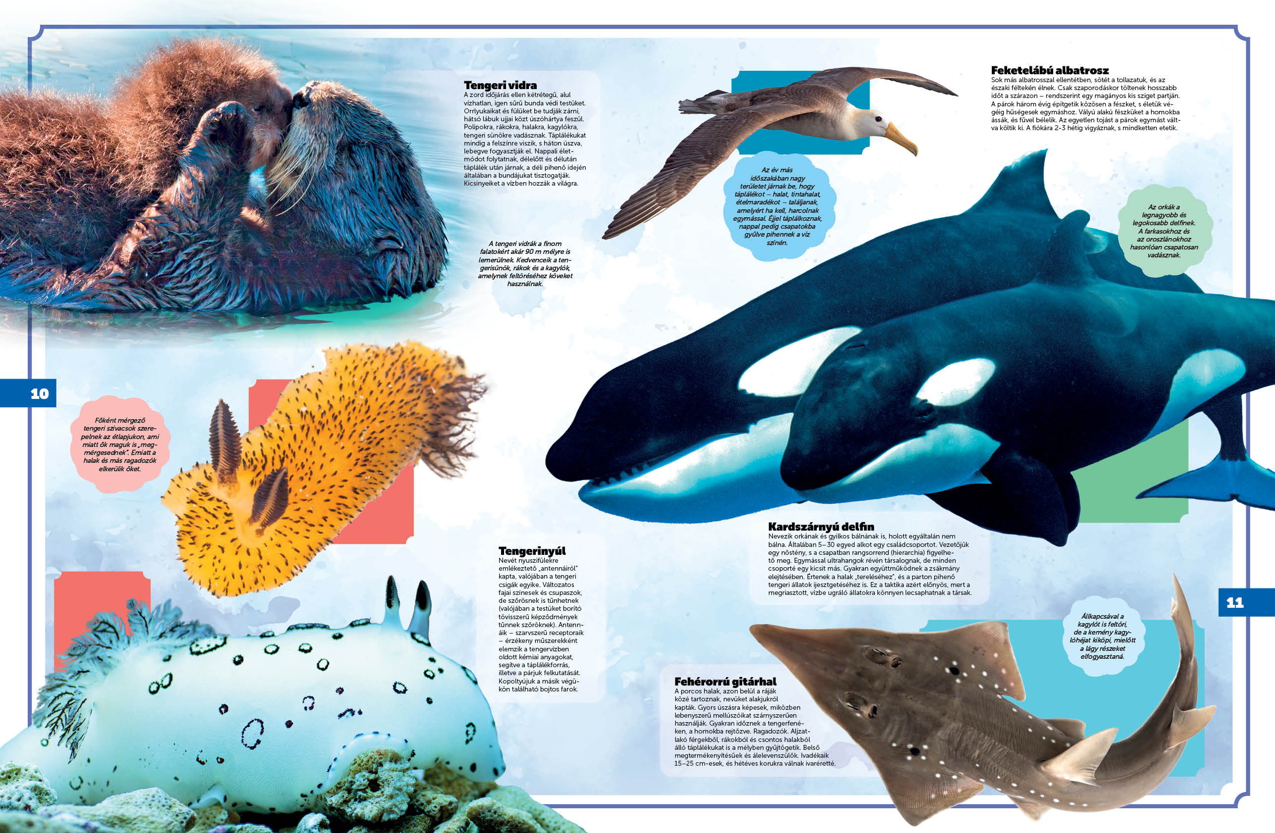 Bolygónk felszínének háromnegyed részét víz borítja – nem csoda, hogy „kék bolygónak” is nevezik. A sorozat harmadik kötetében a Föld vizeinek világában kalandozhatunk – óceánok és tengerek, folyók, tavak, tengerpartok, korallzátonyok, árterek várnak ránk. Megismerkedhetünk a repülőhallal, a kardszárnyú delfinnel, az ördögrájával s még számos érdekes – vízben vagy annak közelében élő – állatfaj életébe pillanthatunk be.