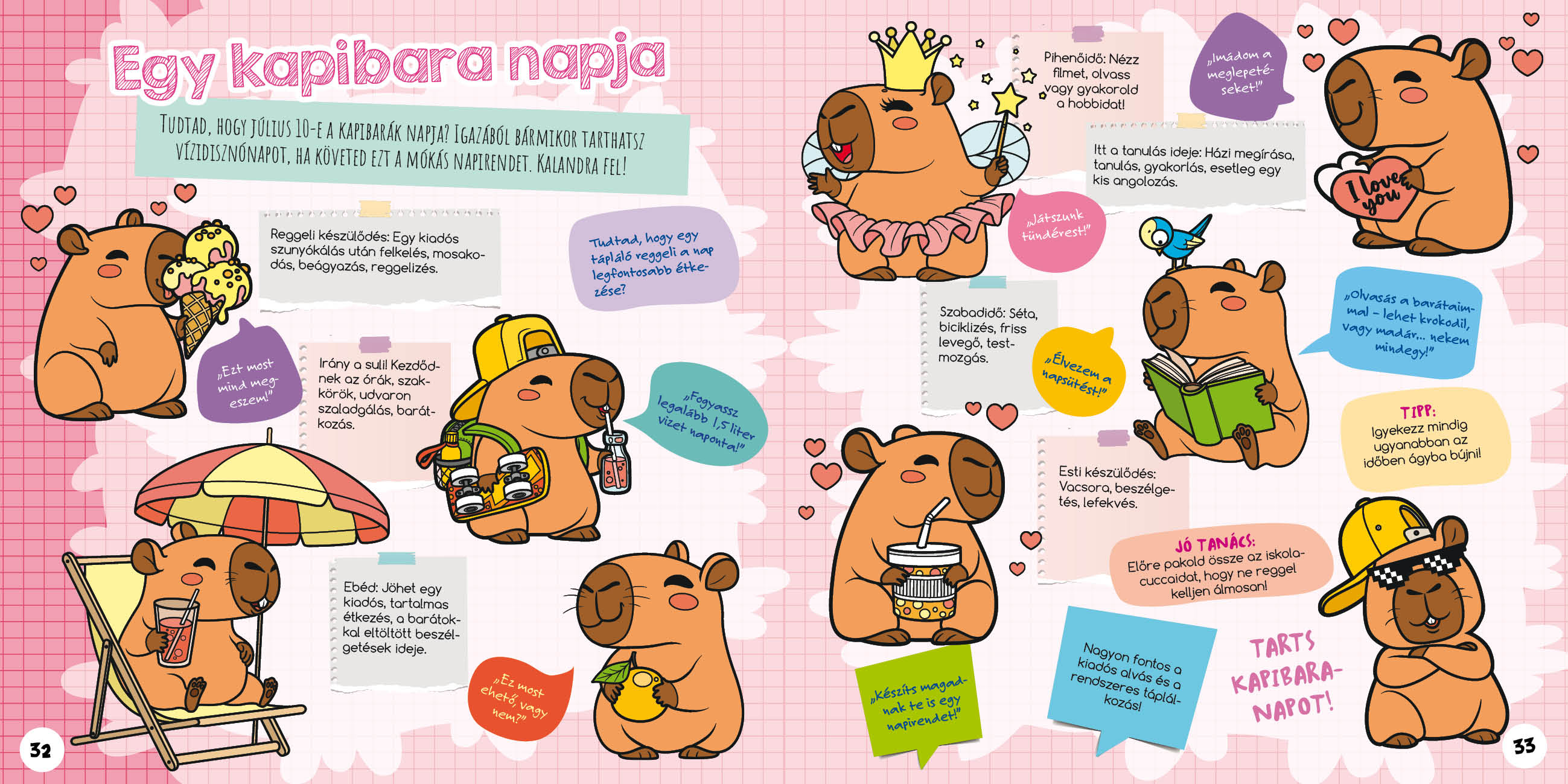Ez a könyv a kapibarák csodálatos, vicces és meglepően tanulságos életébe vezet be – miközben bárki elleshet tőlük néhány életmódtippet, kreatív barkácsötletet és mosolyt garantáló apróságot.