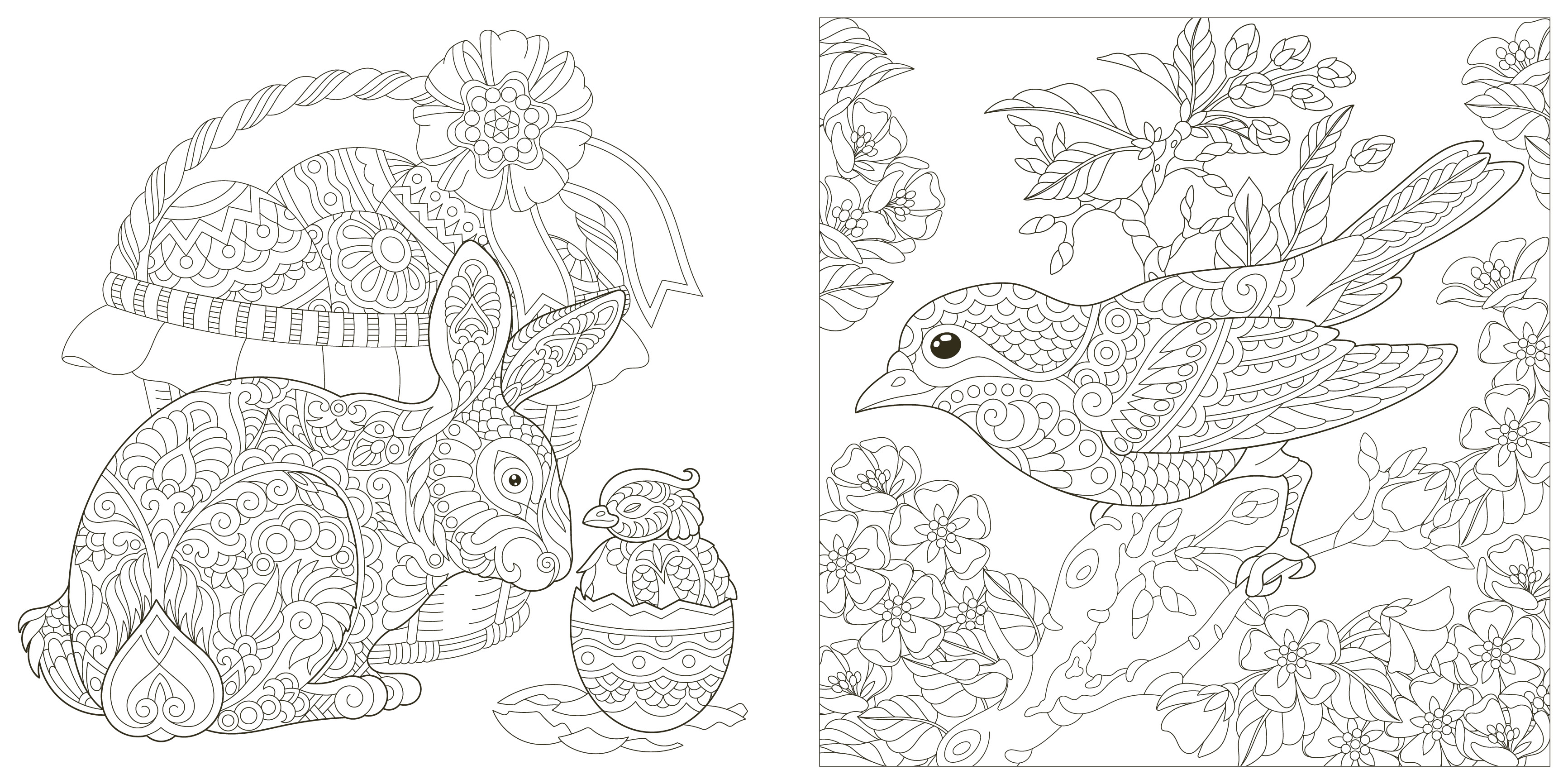 Húsvéti kifestő tematikus mintákkal, apró részletekkel, az ünnepi készülődés színesítéséhez.