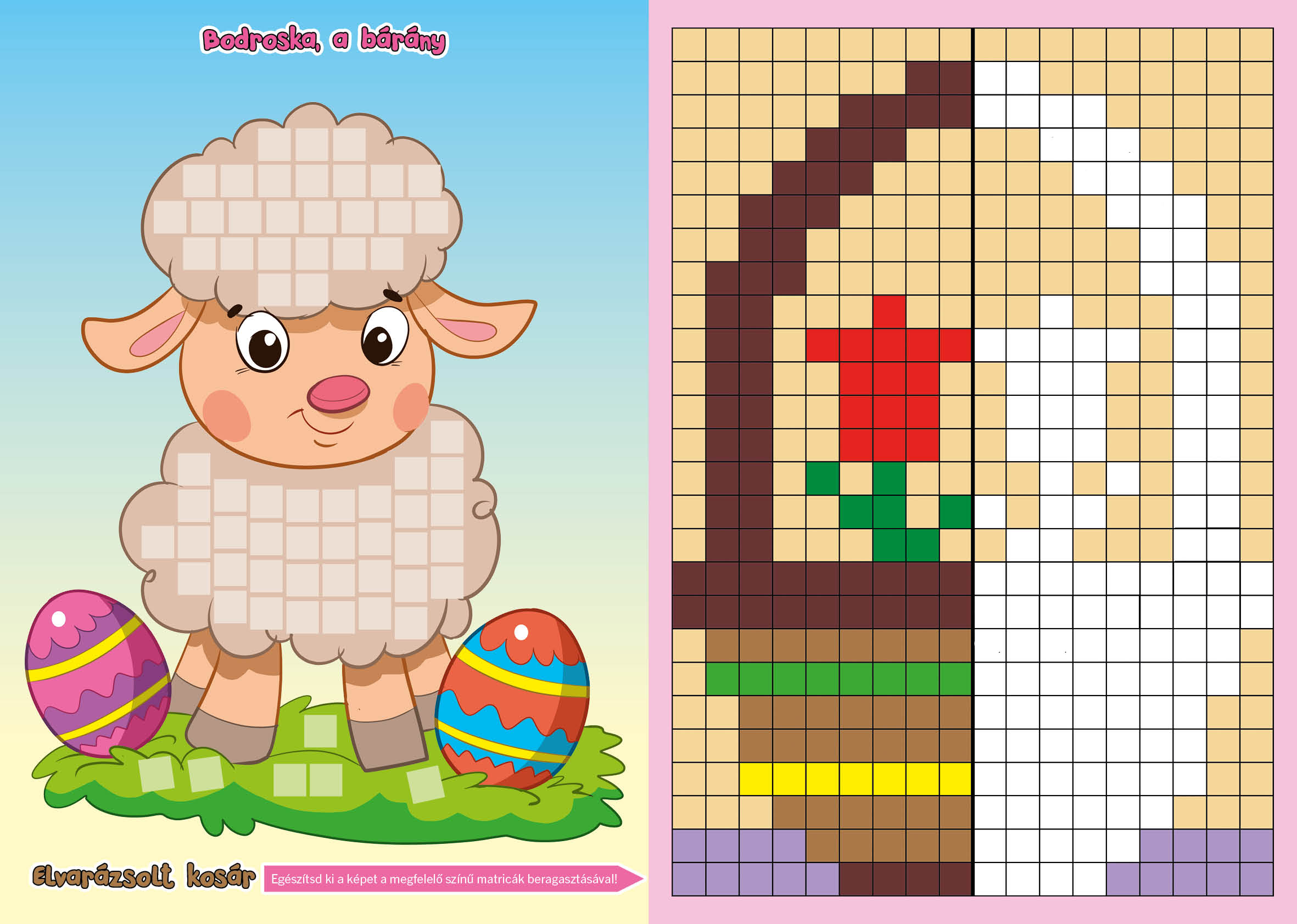 A húsvéti matricamozaik egy újabb kedves témájú kiadvány, amelyben a már ismert matricázó technikával teheti kompletté a gyermek a képeket.