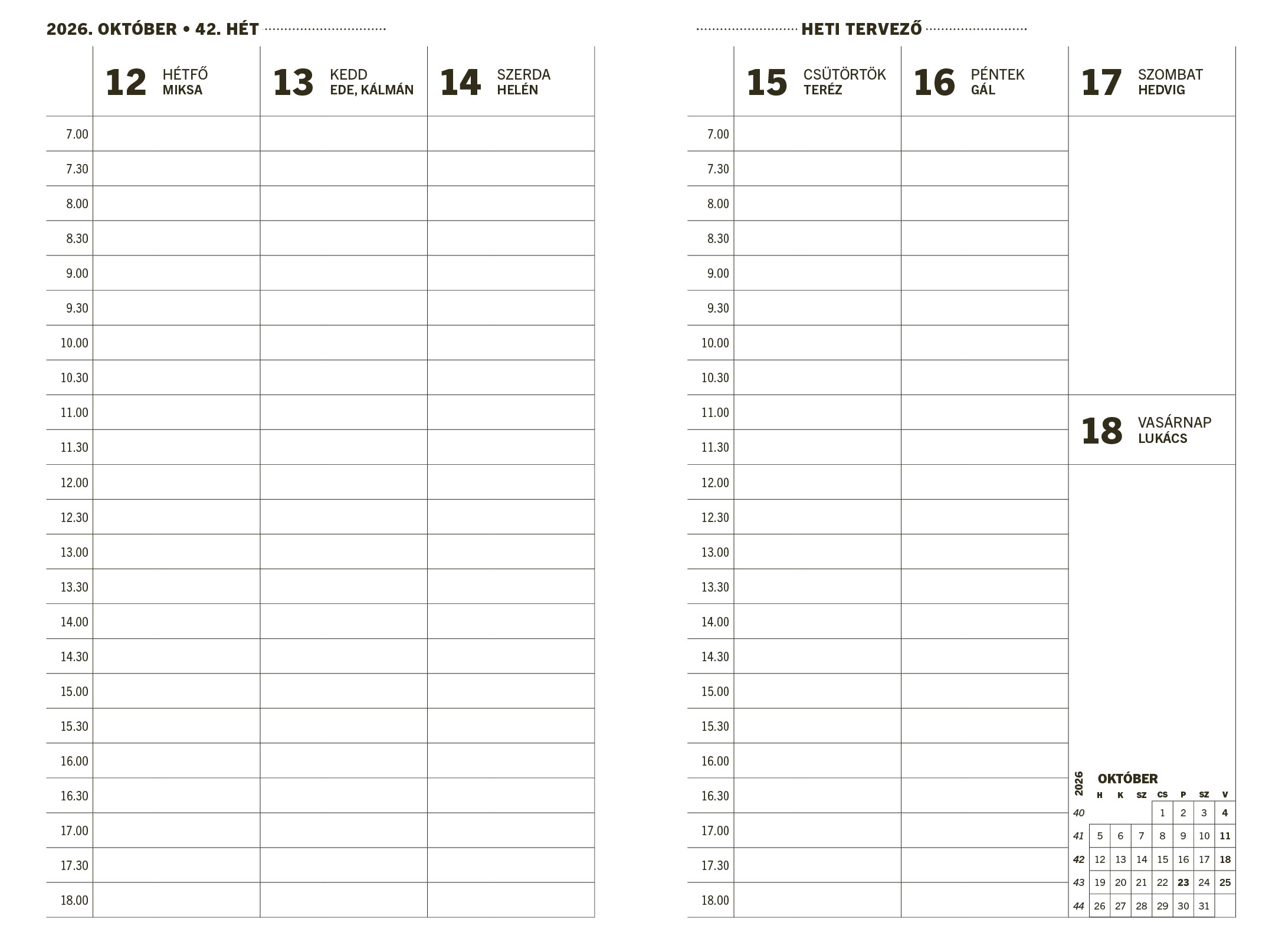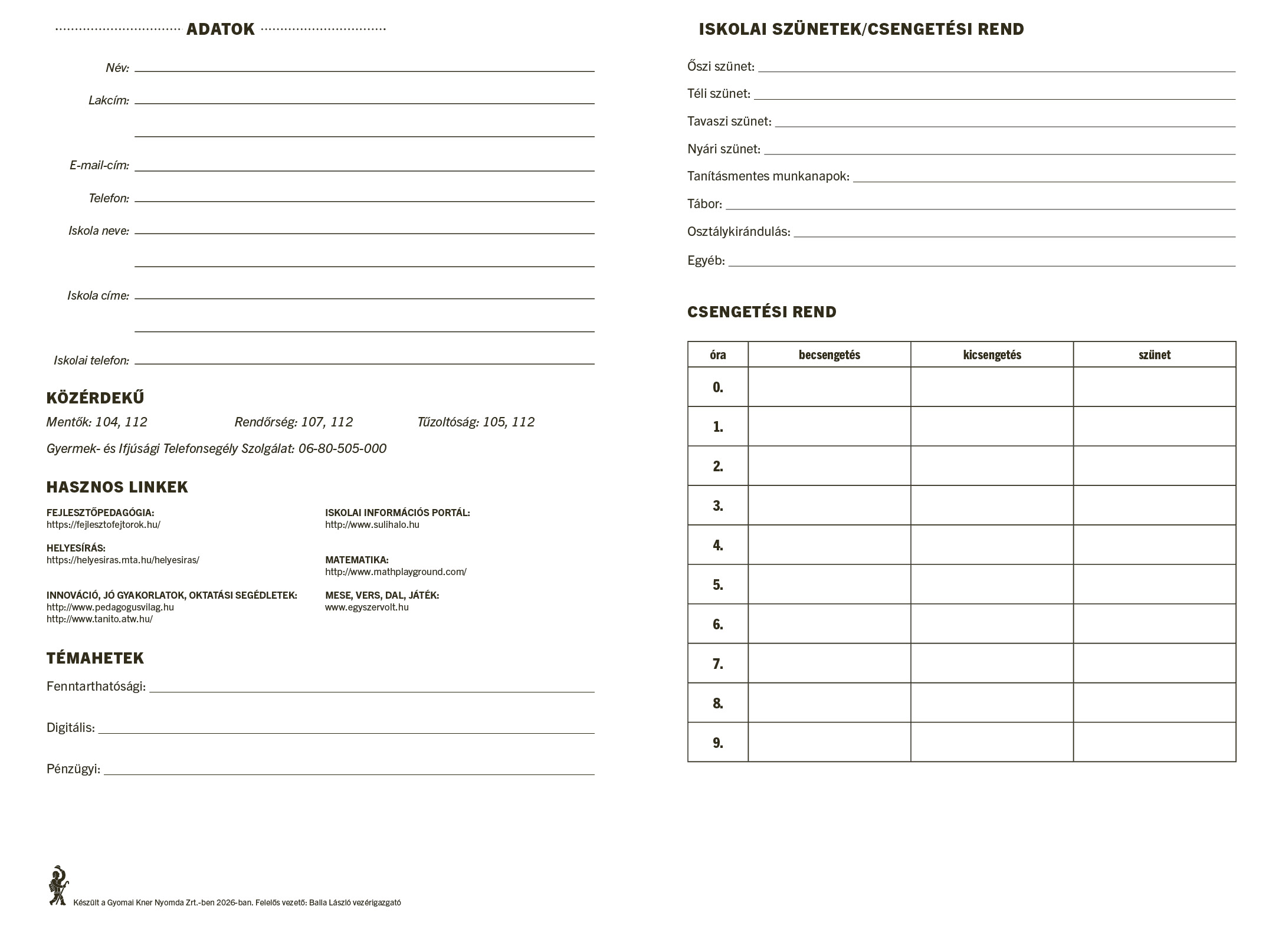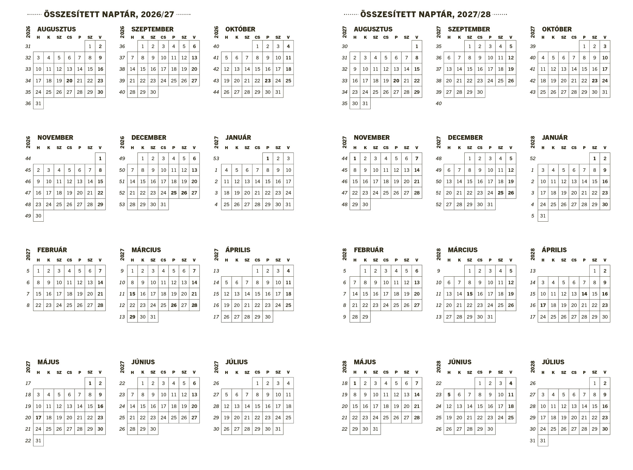 Kalendárium pedagógusoknak a 2026/2027-es tanévre.
