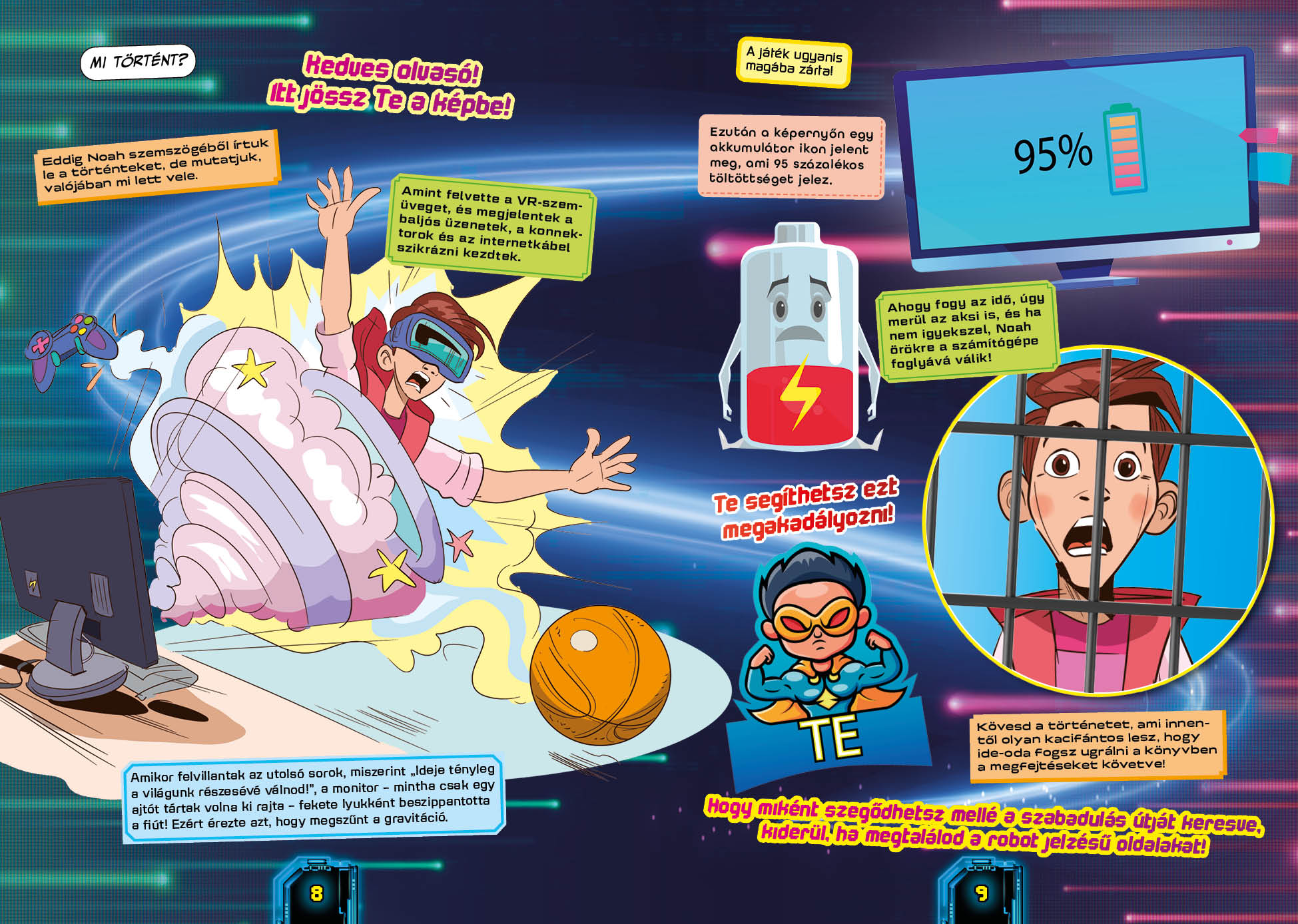 Egy eszelős szabadulás története a kibertérben, amely foglyul ejt egy gamert, Noah-t. A kijutás lehetősége csak az olvasókon múlik.