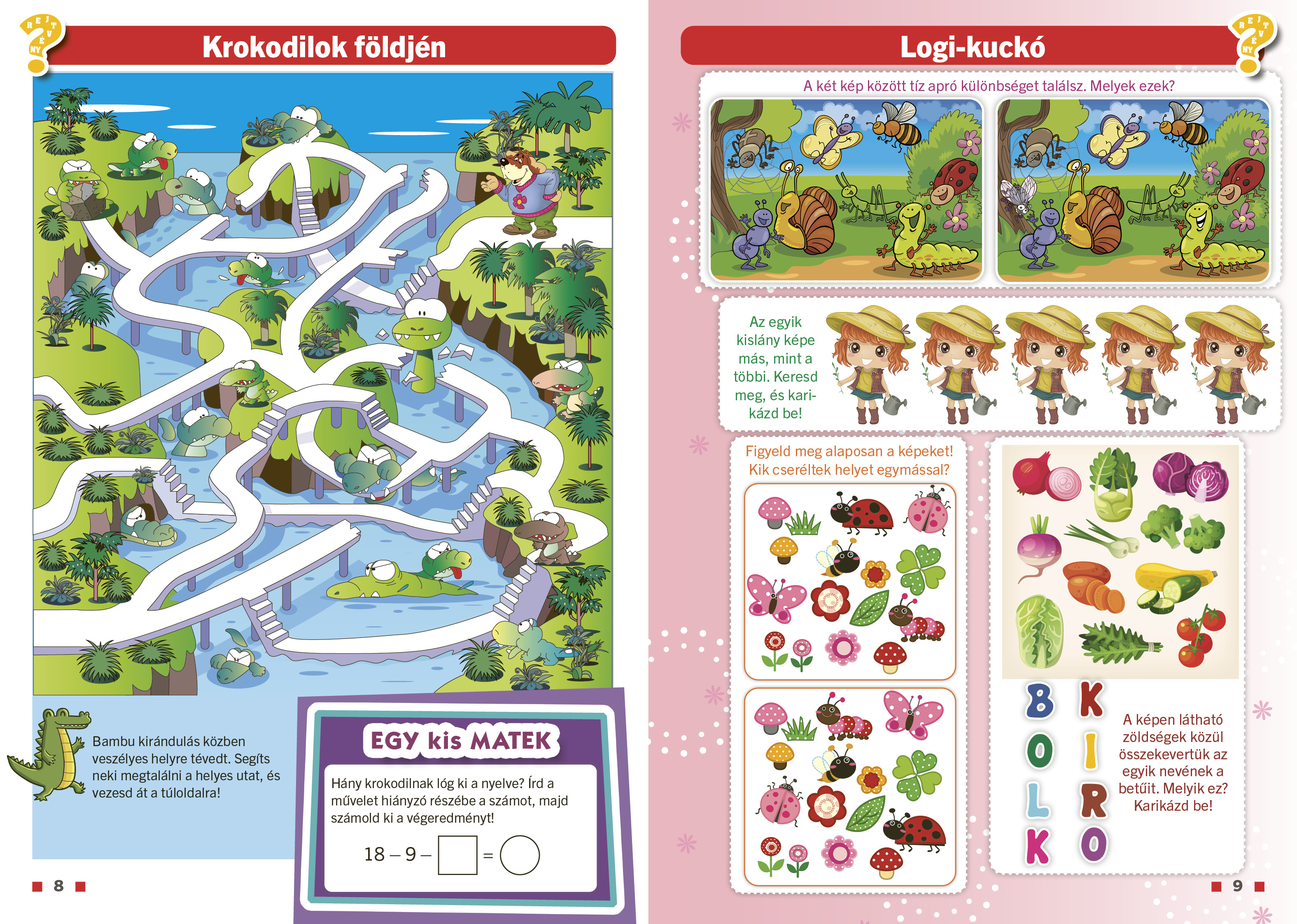 A változatos feladattípusok támogatják az olvasás, számolás és gondolkodás fejlődését, miközben élményszerű tanulást kínálnak.