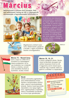 A második osztályosok számára szerkesztett ismeretterjesztő magazin szaktárgyi oldalai (matematika, környezetismeret, nyelvtan, olvasás-szövegértés) témaválasztásban és időzítésben is szorosan illeszkednek a NAT-hoz. Az egyes tananyagok megértését, gyakorlását kivágható barkácsolnivalók segítik. Egész évben tematikus sorozatok, mesék tartják fent a gyerekek érdeklődését a magazin iránt.